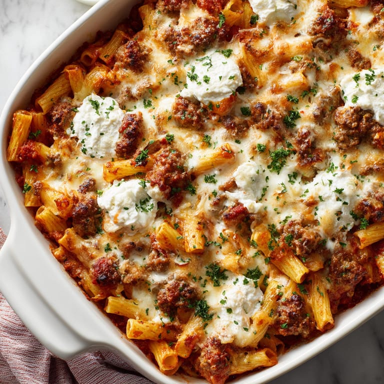 Use spicy or sweet Italian sausage depending on your preference. Turkey or even vegetarian sausage works for a lighter version. Cottage cheese can stand in for ricotta in a pinch and any tubular pasta will sub for ziti.