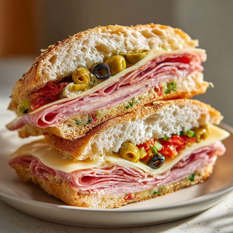 Save to Pinterest This loaded Italian muffuletta sandwich turns an easy assembly into a memorable meal and is always my top pick for gatherings thanks to its crowd-pleasing flavor and stress-free preparation. There is something about the mix of briny olive salad and a hearty stack of Italian meats and cheese that makes every bite pop. Perfect for sharing yet indulgent enough to eat yourself.