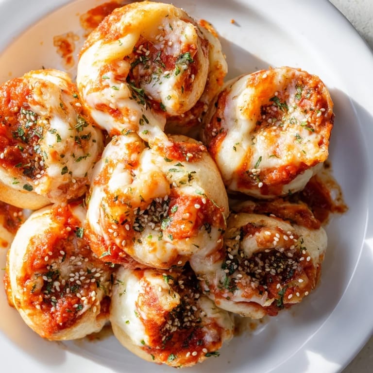 - Flatten each piece, fill with a pinch of mozzarella, parmesan, and herbs, then pinch to seal and shape into a ball.