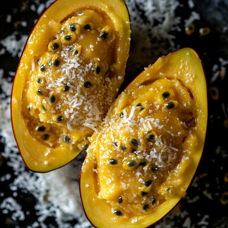 Mango and passion fruit are cherished throughout the Caribbean and Southeast Asia for their vibrant flavor and intense aroma. Serving fruit inside its own skin is a traditional way to celebrate seasonal abundance and reduce waste. Sorbet as a luxury treat dates back to ancient Persia where fruit ices were enjoyed by nobility as a sign of hospitality and skill.