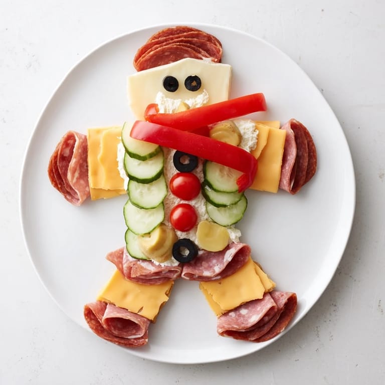 Save to Pinterest A playful and festive appetizer platter featuring a savory gingerbread man made with meats, cheeses, and vibrant vegetables—perfect for holiday gatherings.