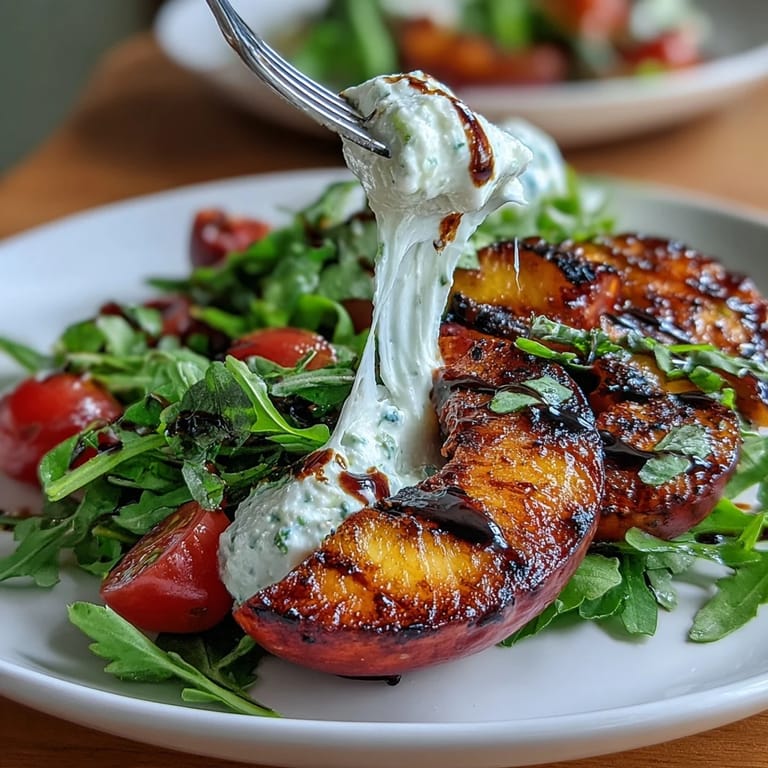 Save to Pinterest Last summer, I grabbed a bag of peaches at the farmers market without a real plan, just knowing they smelled incredible and the season was too short to waste them on anything ordinary. That evening, I found myself standing at the grill with half a peach in each hand, suddenly inspired to char them until their edges caramelized into something almost candy-like. By the time I'd scattered creamy burrata across a bed of peppery arugula, the whole thing tasted like the best possible version of warm, effortless entertaining—the kind of meal that makes people linger at the table without anyone realizing the work took less than 25 minutes.