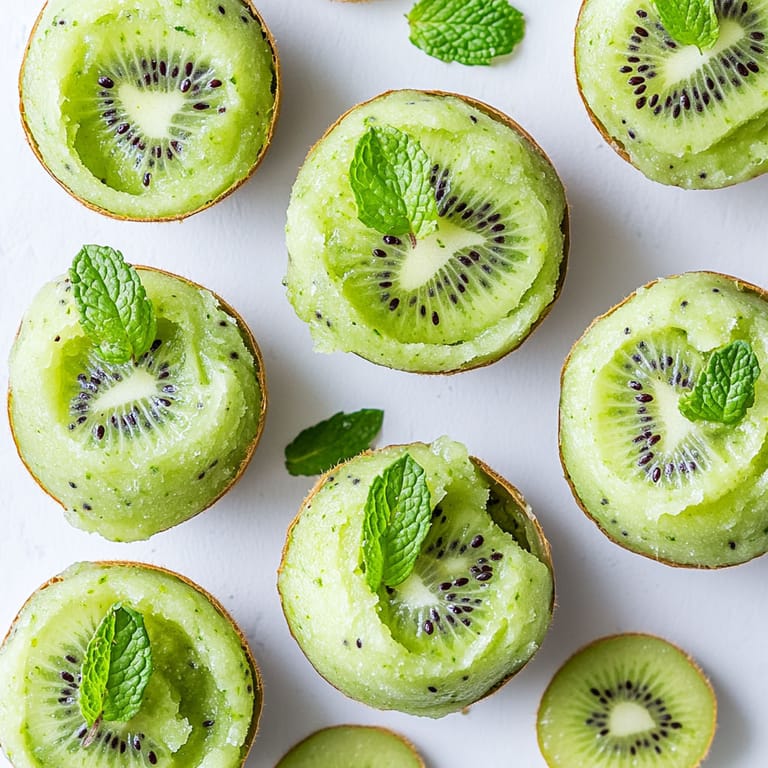 Save to Pinterest Kiwi mint sorbet shells are the ultimate way to turn fresh fruit into a show-stopping frozen treat that delivers a bright punch of natural tang flavor and color. The best part is everything is served right back in the kiwi itself for a dessert that feels extra special with hardly any fuss. This recipe has become my go-to when I want something refreshing and playful to impress guests with little time spent in the kitchen.