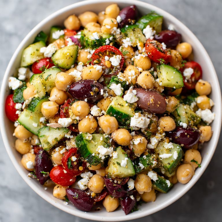 Save to Pinterest This Mediterranean Chickpea Salad is proof that simple pantry staples can deliver vibrant flavor and satisfying nutrition Bright fresh and loaded with contrasting textures it is perfect for busy days and easy gatherings