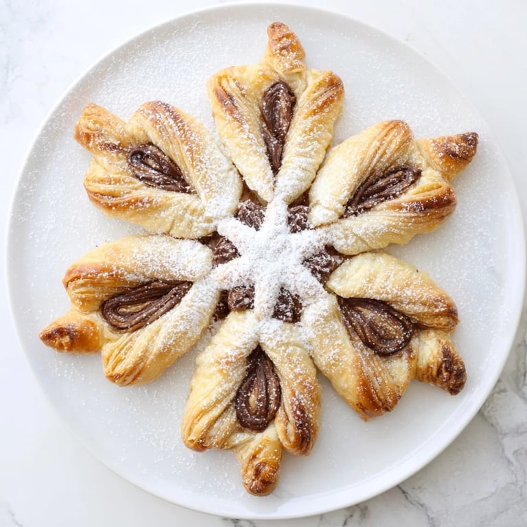 Save to Pinterest Flaky, golden puff pastry with a luscious Nutella filling, shaped into beautiful snowflakes—a festive treat thats as fun to make as it is to eat.