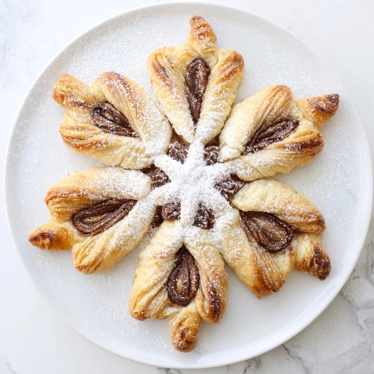 Save to Pinterest Flaky, golden puff pastry with a luscious Nutella filling, shaped into beautiful snowflakesβa festive treat thats as fun to make as it is to eat.