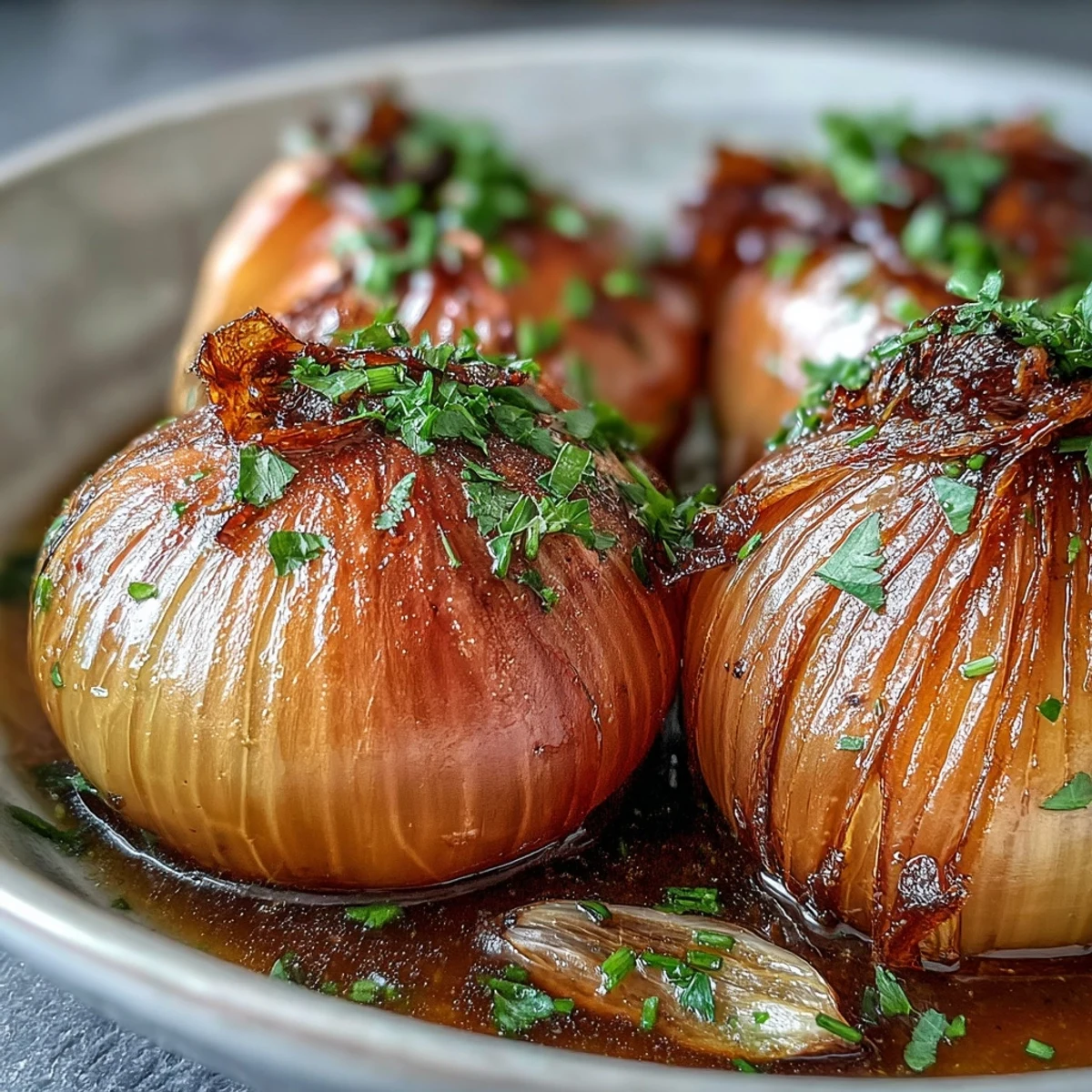 - Fish out the bay leaf and thyme, taste the broth and adjust salt, then ladle whole onions into bowls with plenty of that fragrant liquid and scatter fresh parsley on top.