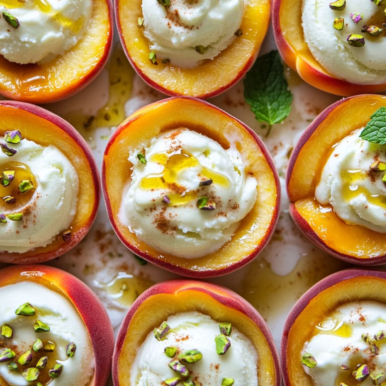 Save to Pinterest Sweet sun—ripened peaches become frozen edible bowls brimming with honeyed Greek yogurt sorbet in this playful summer recipe. You get all the bright tartness of fresh peaches balanced with creamy yogurt and a breeze of cinnamon tucked into each cup. It’s a showstopper on any table but easy enough for a no—fuss weeknight after a hot day.