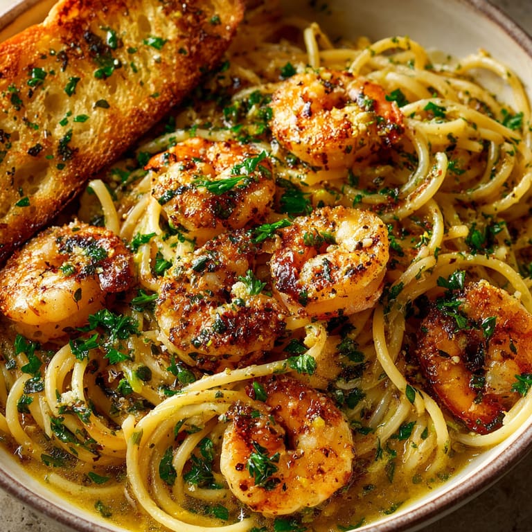 - Spoon hot pasta or rice into wide bowls. Arrange the buttery garlic shrimp and sauce on top. Serve with plenty of garlic bread for dipping and scooping up every bit of sauce.