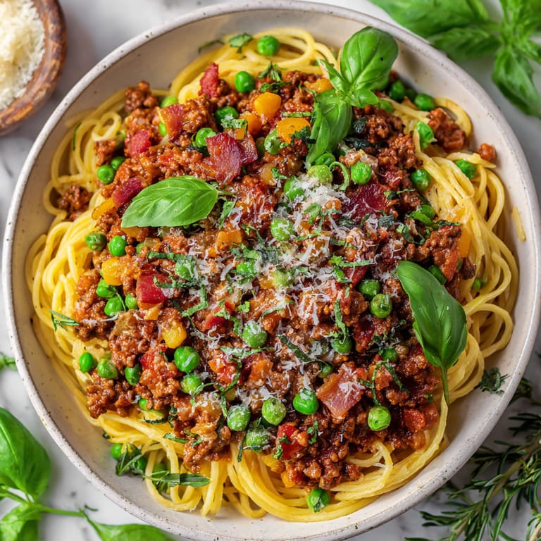 Classic Bolognese from Bologna in Italy is all about slow simmering and rich base flavors. This version keeps the soul of those traditions yet takes the liberty of adding bacon and peas for extra comfort—a habit you see in many home kitchens. It is what makes it so adaptable to busy weeknights or big gatherings.