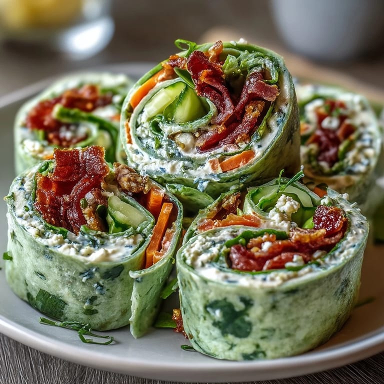 Save to Pinterest These vibrant spinach pinwheel wraps are the perfect fusion of freshness, flavor, and convenience. Imagine biting into a colorful spiral of emerald-green tortilla, lush herb cream cheese, and crisp julienned vegetables—each pinwheel is a miniature celebration of wholesome ingredients wrapped up in one elegant, bite-sized package. Whether you're hosting a casual get-together, packing a nutritious snack for work, or simply craving something light yet satisfying, these pinwheels deliver on every front. They're incredibly easy to prepare, require no cooking, and can be made ahead, making them an ideal choice for busy days and spontaneous gatherings alike.