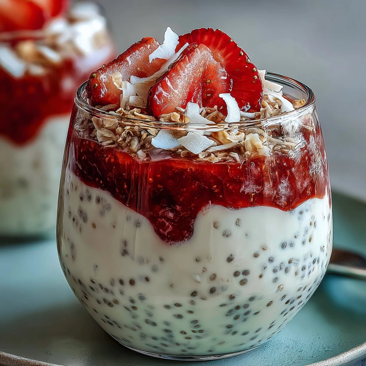 - Top with sliced strawberries, toasted coconut flakes, and fresh mint leaves if desired.