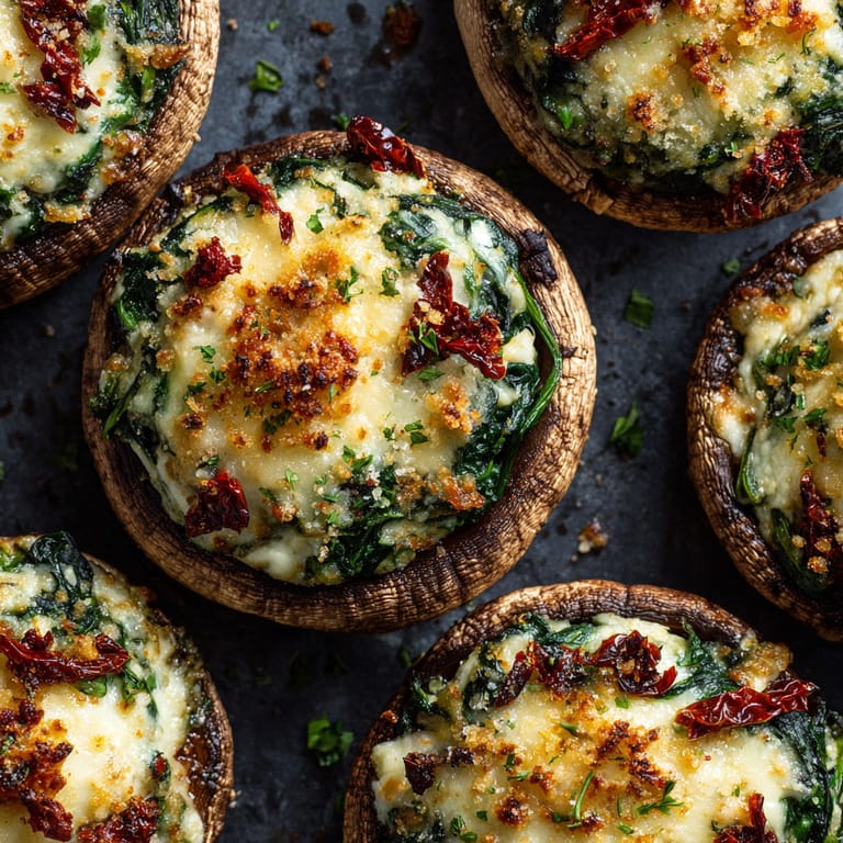 Try swapping kale for spinach during cooler months or use chard for a tender twist You can replace mozzarella with shredded provolone or fontina for a richer flavor If you are dairy free soft tofu can stand in for the ricotta and nutritional yeast for parmesan The flexibility makes these mushrooms a year round favorite in my house
