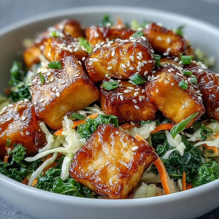 Save to Pinterest My kitchen smelled like toasted sesame oil the afternoon I first threw together this bowl, trying to salvage some sad tofu and wilting greens before they hit the compost. What started as a desperate use-it-up moment turned into something I've made at least twice a week since—it's got that satisfying crunch and savory depth of an egg roll, minus the deep-fried guilt. The crispy tofu edges against the tender kale and bright cabbage created this texture contrast that kept me coming back for another bite, and then another. My partner walked in mid-stir and asked if we were eating takeout, which felt like the highest compliment.