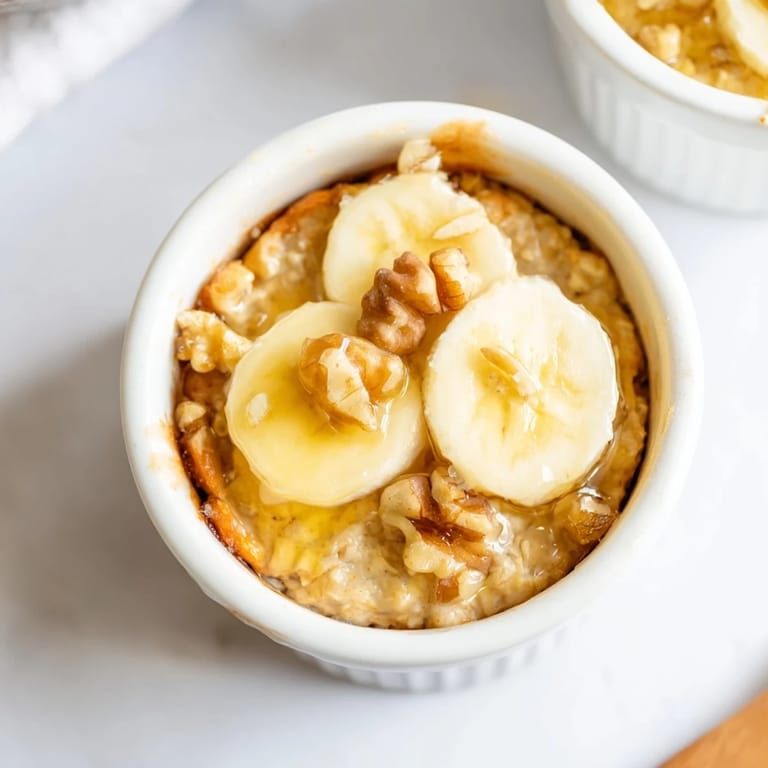 Save to Pinterest A warm, nourishing breakfast treat featuring creamy baked oats, sweet banana, and a drizzle of honey, baked to perfection in individual ramekins.