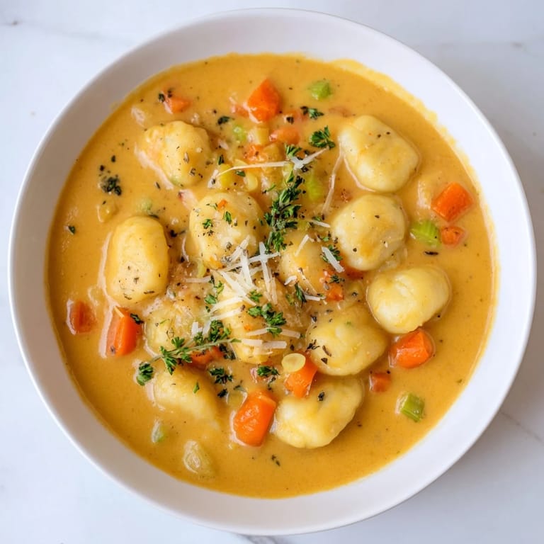 Save to Pinterest A comforting soup featuring pillowy gnocchi, velvety butternut squash, and aromatic herbs in a savory broth—perfect for chilly evenings.