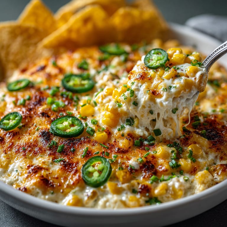 Loaded with melty cheddar and Monterey Jack, this dip features sweet corn and spicy jalapeños baked to bubbly perfection. The creamy blend is accented by green onions and savory seasonings for a satisfying bite. Simply stir the mixture, bake, and enjoy it hot alongside crispy tortilla chips. Customize with extra mix-ins like bacon or tomatoes, and serve with salsa or guacamole for even more flavor. Easy to prepare, it’s sure to impress at gatherings or casual snacking sessions.