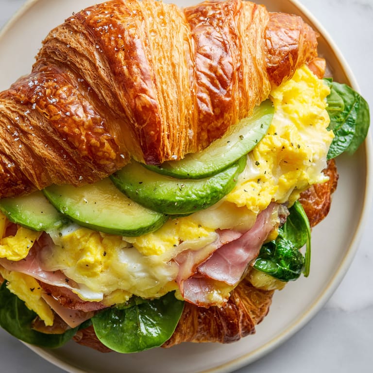 Save to Pinterest Morning routines get a serious upgrade with these croissant breakfast sandwiches stuffed with creamy scrambled eggs savory ham and gooey melted cheese The flaky golden croissant makes every bite feel decadent but you can have them ready faster than a coffee run My family loves these for holiday brunch and lazy Sundays alike