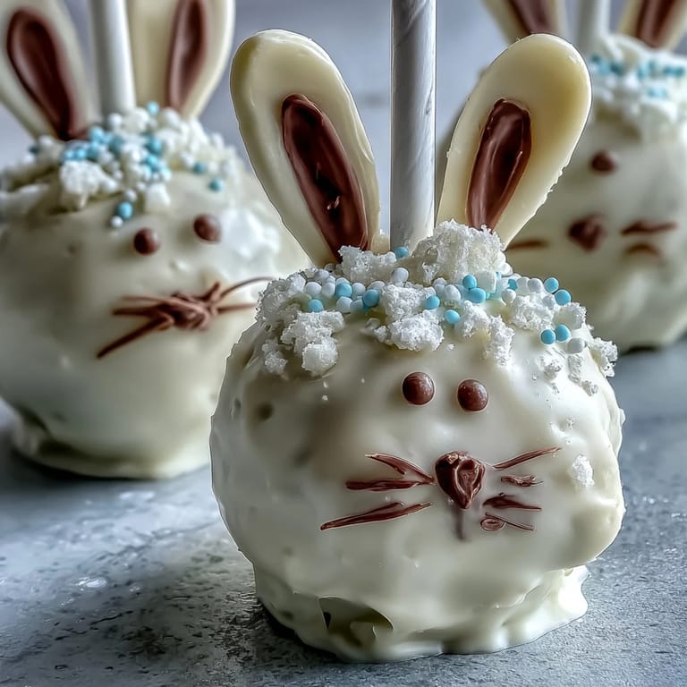 Save to Pinterest The magic of cake pops lies in their versatility and the joy they bring to both makers and eaters. These Easter Bunny Cake Pops start with a moist vanilla or funfetti cake that's crumbled and mixed with a creamy cream cheese frosting, creating a rich, truffle-like texture. The addition of white chocolate coating not only adds a delicious layer of sweetness but also provides the perfect canvas for your creative bunny decorations. Each pop becomes a tiny edible sculpture, complete with pink ears, a sweet nose, and whiskers that bring personality to every bunny.