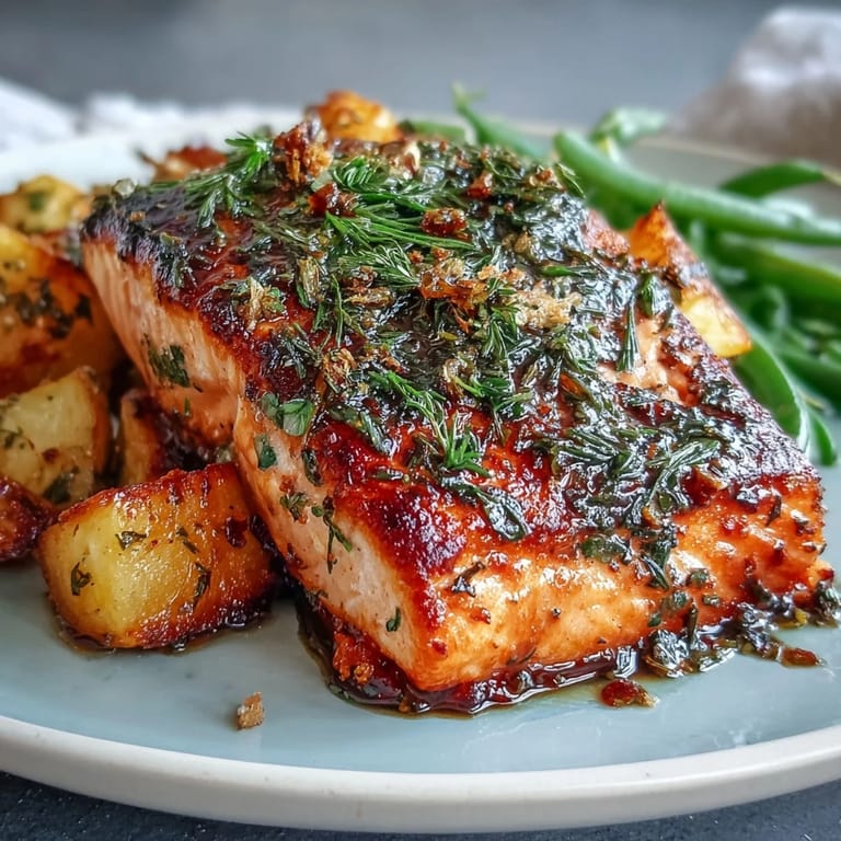 This dish offers a healthy and effortless approach to dinner by roasting salmon, baby potatoes, and green beans together on a single pan. The salmon stays tender and flavorful thanks to a zesty marinade with lemon, garlic, and herbs. The potatoes roast to a golden finish while the green beans retain a crisp-tender texture. Ready in just 40 minutes, it’s a balanced and colorful meal ideal for busy nights that doesn’t sacrifice taste or nutrition.