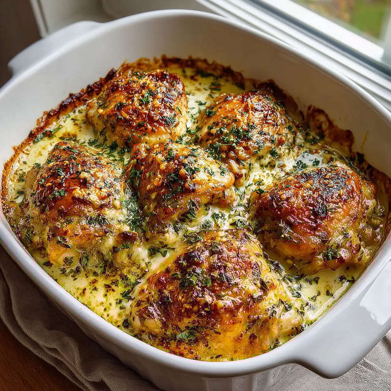 Savor tender chicken enveloped in a creamy garlic and parmesan sauce, all brought together in a single baking dish for a simple yet luxurious meal. The rich creaminess, aromatic garlic, and sharp Parmesan blend seamlessly with Italian seasoning, creating a golden, bubbly finish. Perfect for easy weeknight dinners, this dish balances convenience and indulgence, offering deep flavor with minimal effort. Simply bake until the sauce bubbles and chicken is perfectly cooked—serve with your favorite sides to complete the experience. Try adding spinach or mushrooms for extra depth, or lighten the sauce by mixing in chicken broth. A comforting option bursting with familiar, savory flavors.
