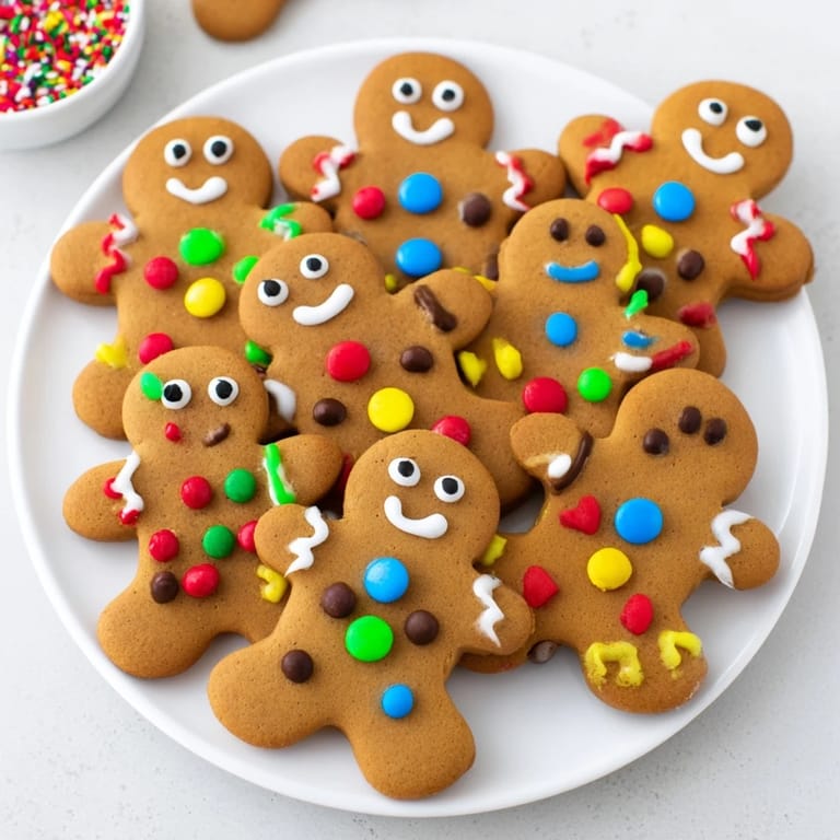 Soft gingerbread people with colorful icing and candy decorations for holiday fun.