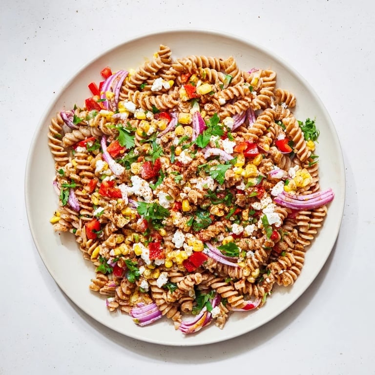 Save to Pinterest A vibrant and lighter twist on the classic Mexican street corn, this pasta salad combines charred corn, whole wheat pasta, creamy Greek yogurt, tangy lime, and fresh herbs for a deliciously satisfying side or light main.