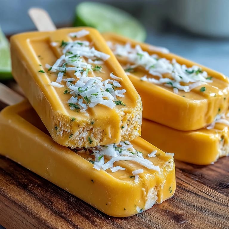 These mango popsicles are best served straight from the freezer. For a complete tropical experience, pair them with a tall glass of sparkling water garnished with fresh lime slices. You can also garnish the finished popsicles with a little extra lime zest for a pop of color and aroma.