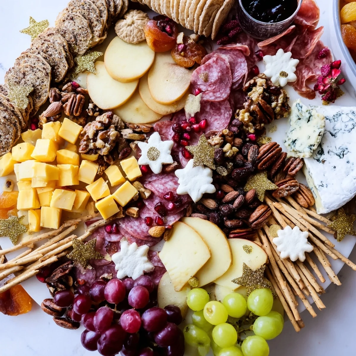 For a vegetarian board, simply omit the charcuterie and add marinated vegetables or extra varieties of cheese. Feel free to swap any cheeses, fruits, or sweets with your personal favorites to customize the board perfectly. Consider arranging ingredients into festive shapes like stars or trees to enhance the holiday spirit.