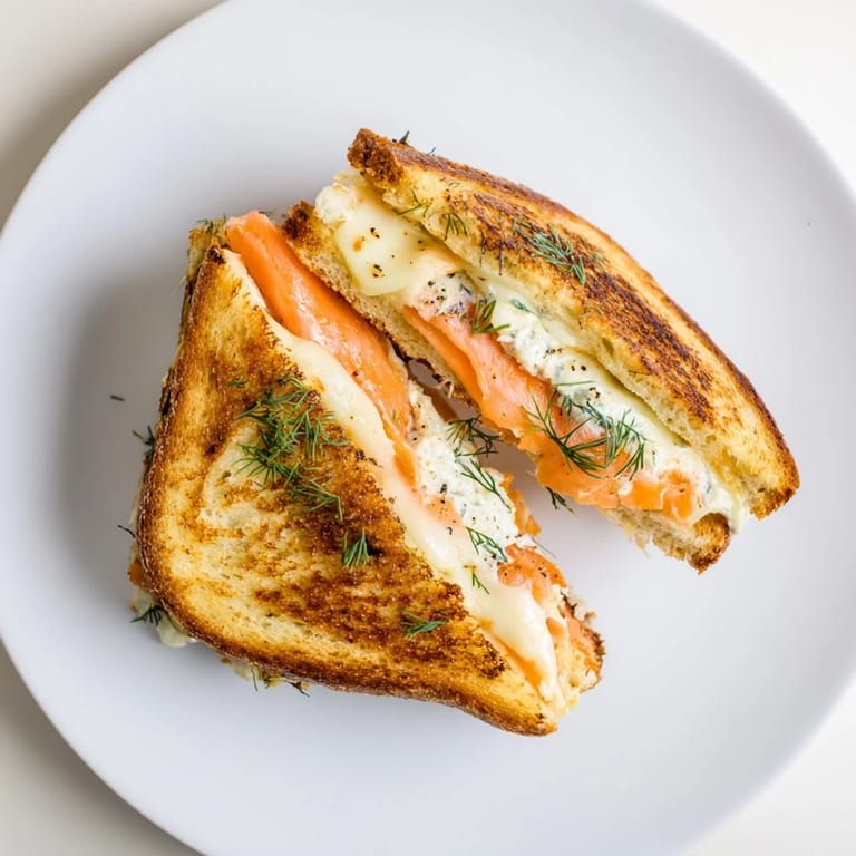 Save to Pinterest There's something about the smell of butter hitting a hot skillet that makes me want to elevate the most ordinary lunch. One Tuesday, I'd bought beautiful smoked salmon on a whim and found myself staring at a loaf of sourdough, wondering how to make something more interesting than the usual quick bite. That's when it clicked—why not turn the grilled cheese, that reliable comfort food, into something that felt a little fancy? The first time I pressed that buttery bread down and heard it sizzle, watching the cheese melt into the salmon, I knew I'd stumbled onto something worth repeating.