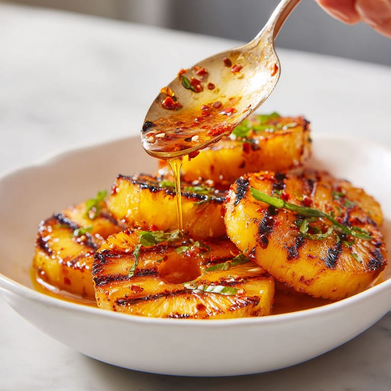 Grilled pineapple is a signature element in many Latin and Southeast Asian dishes adding both sweetness and smoky complexity. This version brightens up summer barbecues but in winter I sometimes grill the slices on a grill pan indoors. The glaze works with other fruit like peaches or mango too.