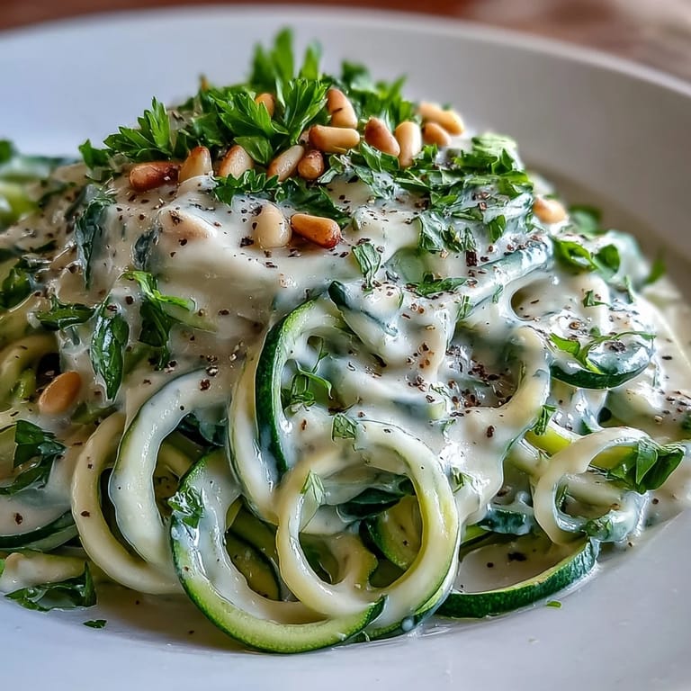 Save to Pinterest A luscious, dairy-free take on classic Alfredo sauce, this recipe creates a silky, indulgent experience using the natural creaminess of cashews. Served over fresh spiralized zucchini noodles, it offers a light yet satisfying Italian meal that fits perfectly into a healthy lifestyle.